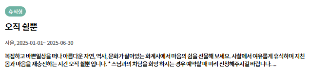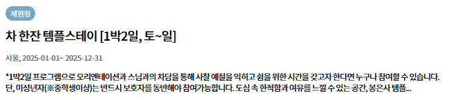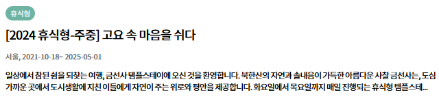 - 길사 서울 템플스테이 프로그램 더 보기 확인👇